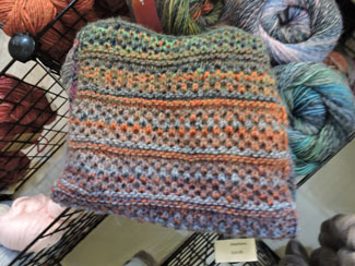 Ghazal Cowl by Kat Archer. I used the Emotions DK wt from James Brett. This cowl is the small size and I used just 1/2 ball of the Emotions. You could use the whole ball and make cowl long enough for double wrap This cowl’s pattern repeats with a flowing rhythm, making it a simple, enjoyable knit. Yet the options for yarn-weight and length, not to mention its beautiful blending of variegated colorways, give you endless possibilities. Pattern on Ravelry.