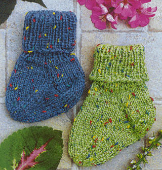 Fast, easy ankle socks for tiny toes using one ball of DK wt. yarn and size 3 needles. Sizes for 4-5" foot (infant - 2 years.)